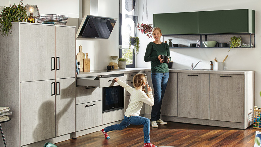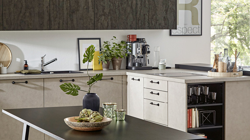Die Betonoptik wirkt kühl und clean und sorgt für ein modernes, puristisches Erscheinungsbild in der Küche.