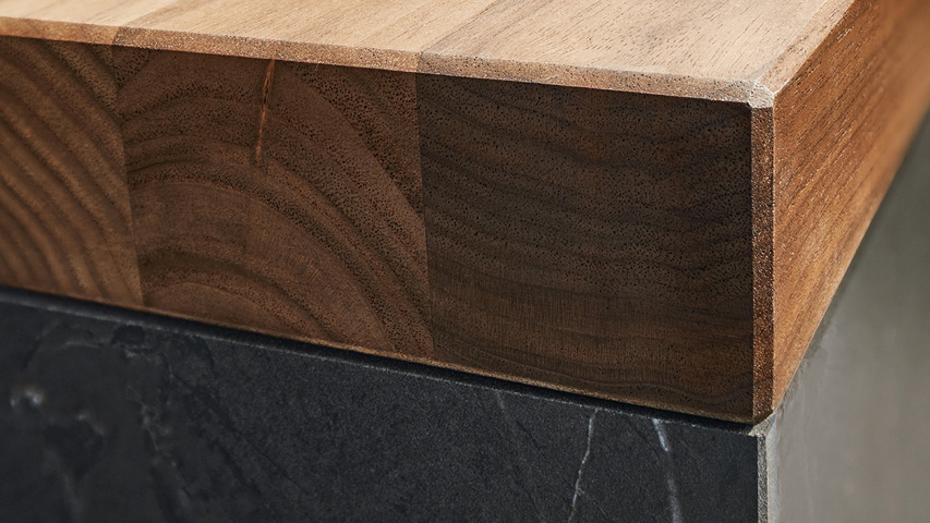 Die Oberfläche ist sehr hart, damit kratzfest und hitzebeständig. Die Langlebigkeit ergibt sich aus der Robustheit des Materials. Mit den Jahren bildet sich – ähnlich wie bei Holz – eine charakteristische Patina, die der Arbeitsplatte ihre ganz eigene Einzigartigkeit verleiht.